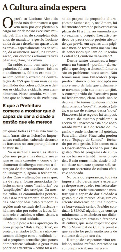A Cultura ainda espera